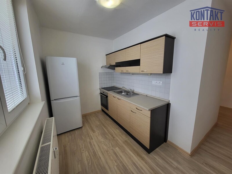 troubou a lednicí. Praktické uspořádání – kuchyně, prostorný pokoj,